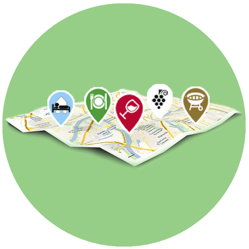 Trova l’agriturismo, la frasca, l’osteria, l’osmiza, la gostilna dove rifocillarti; l’enoteca e la vineria dove degustare e acquistare il vino; il bed & breakfast, la locanda, la camera e l’appartamento dove pernottare durante le tue escursioni.