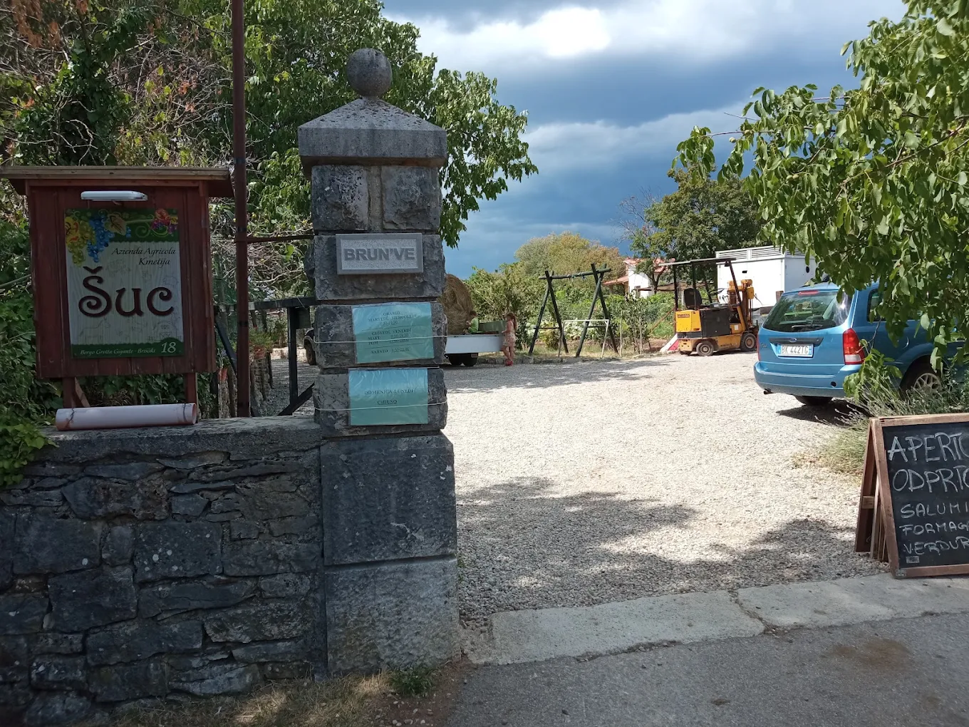 I lavori sono stati notevoli, ma oggi la famiglia può essere soddisfatta, e all’occorrenza può accendere il caminetto al fine di riscaldare gli avventori quando la stagione è ancora fredda. A differenza di molte altre osmize, Erika Šuc vive di questa sua attività agricola, infatti oltre ai porci, nella bella stalla ospita anche mucche, capre, cavalli e galline!